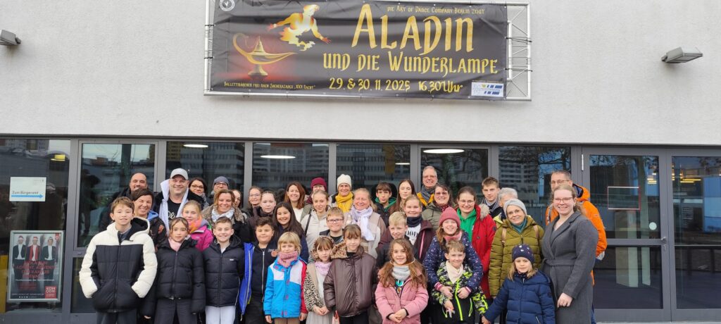 Unter den ca. 1.000 Zuschauern waren auch 102 Teilnehmerinnen und Teilnehmer der Berliner Schwimmjugend, um Aladin, seinen Affen Abu, den fliegenden Teppich und den lustigen Lampengeist auf eine faszinierende Reise in den Orient voller Magie, Spannung und Emotionen zu begleiten.